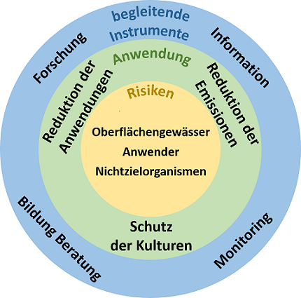 Die Forschung und Entwicklung im Bereich Applikationstechnik und Risikoreduktionsmassnahmen soll weiterentwickelt und die Einführung in die Praxis fachlich unterstützt werden. Die Federführung liegt bei Agroscope und in der agronomischen Forschung tätigen Hochschulen.