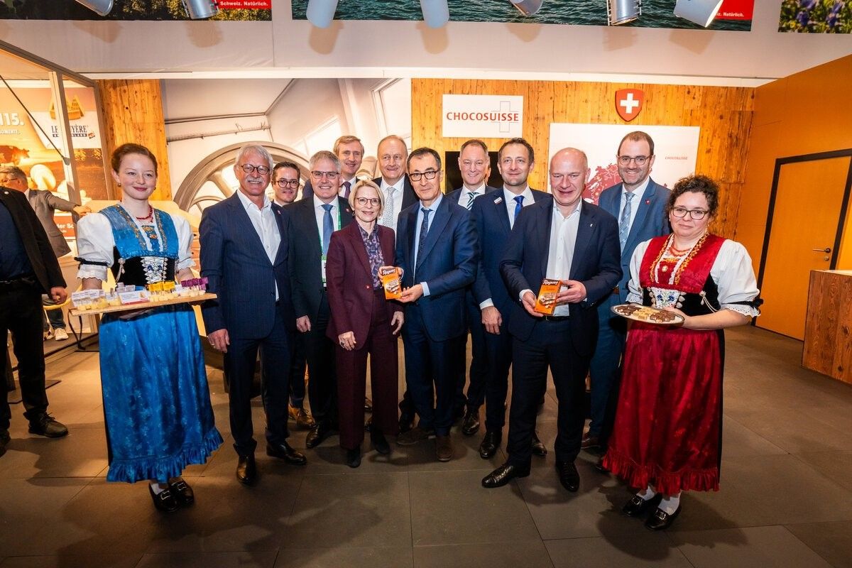Die Schweizer Delegation, Gäste aus der Schweiz und Deutschland wurden von der Schweizer Botschafterin in Berlin, Livia Leu, empfangen. Sie besuchte den Schweizer Stand an der Grünen Woche und begleitete Bundesrat Guy Parmelin auf seinem Rundgang zu den Ausstellern.