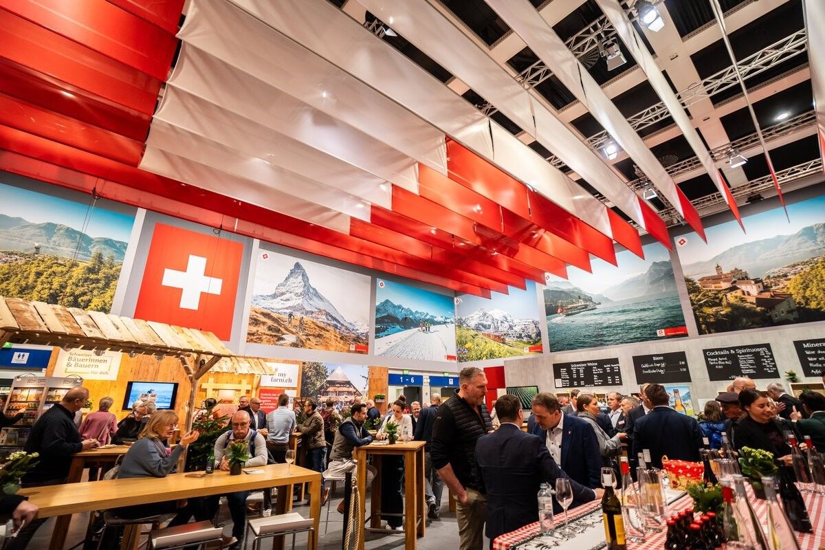 Présentation de denrées alimentaires de qualité sur le stand suisse