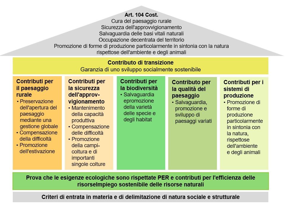La cosiddetta casa dei pagamenti diretti illustra schematicamente i tipi di pagamenti diretti e le esigenze più importanti.